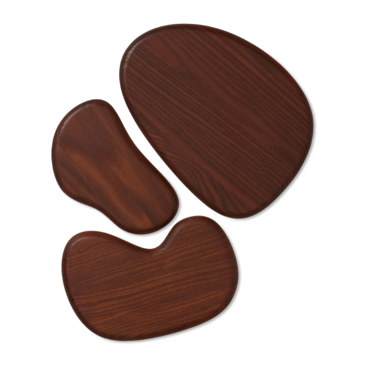 De organiske treformene er inspirert av varder, menneskeskapte steinrøyser som ofte er reist som minnesmerker. Utskåret av solid FSC®-sertifisert asketre og behandlet med en karbonisert finish, har de fine, avrundede kanter for å gi et karakterfullt utseende. Bruk dem når du lager mat på kjøkkenet eller som en dekorativ måte å servere mat ved middagsbordet på.