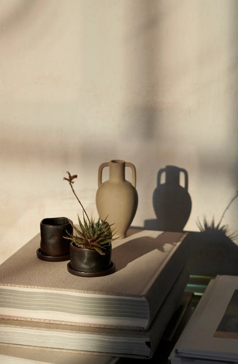 Med glaserte ytre overflater og kunstneriske ujevne kanter, vil dette settet med Uneru Mini Potter med matchende tallerkener gi ethvert rom et varmt, taktilt uttrykk.