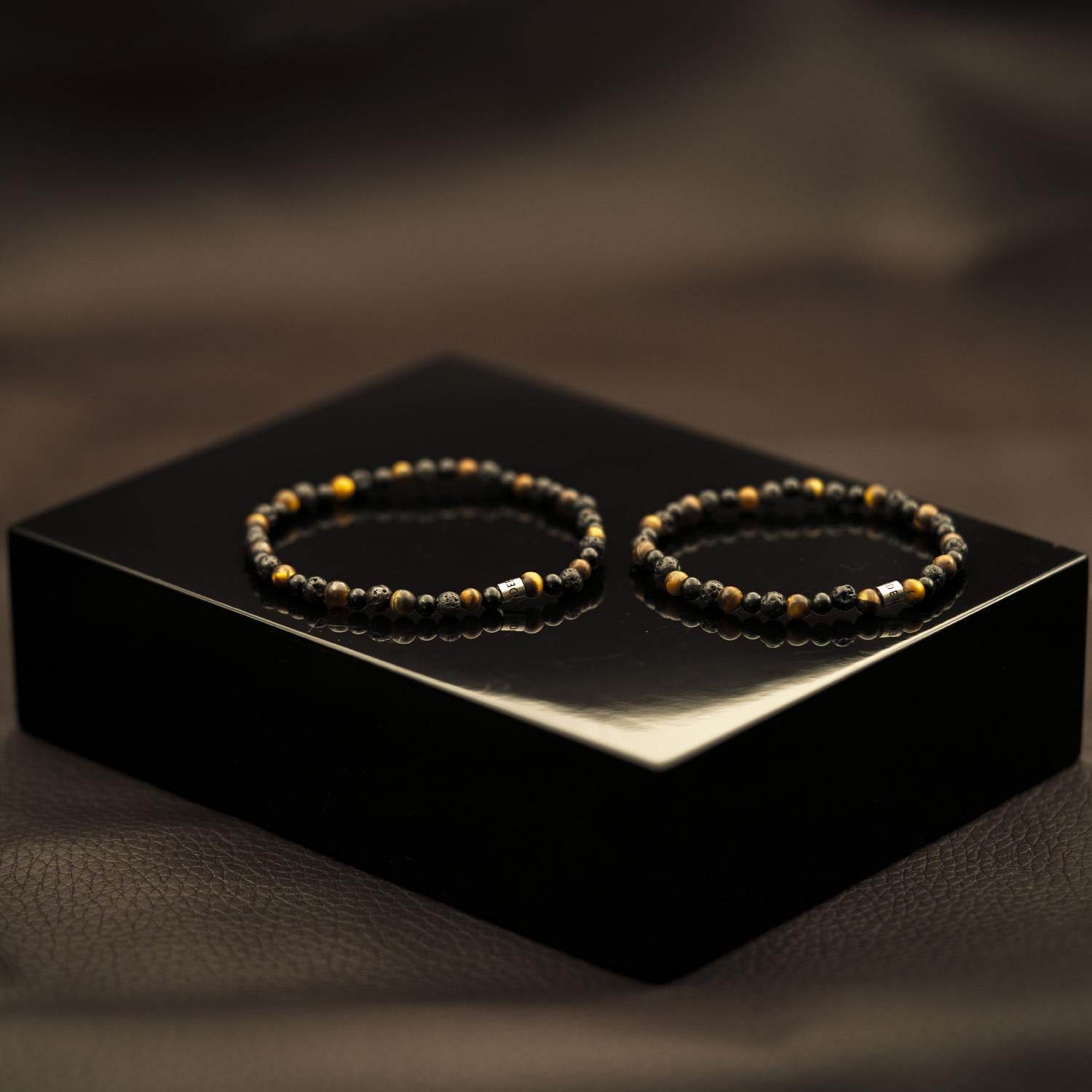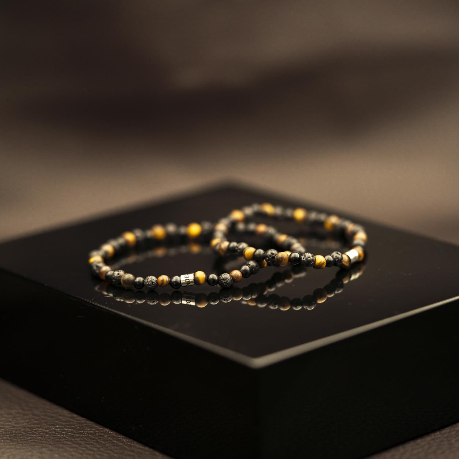 Armbånd i stå med stenperler i sort og brun.