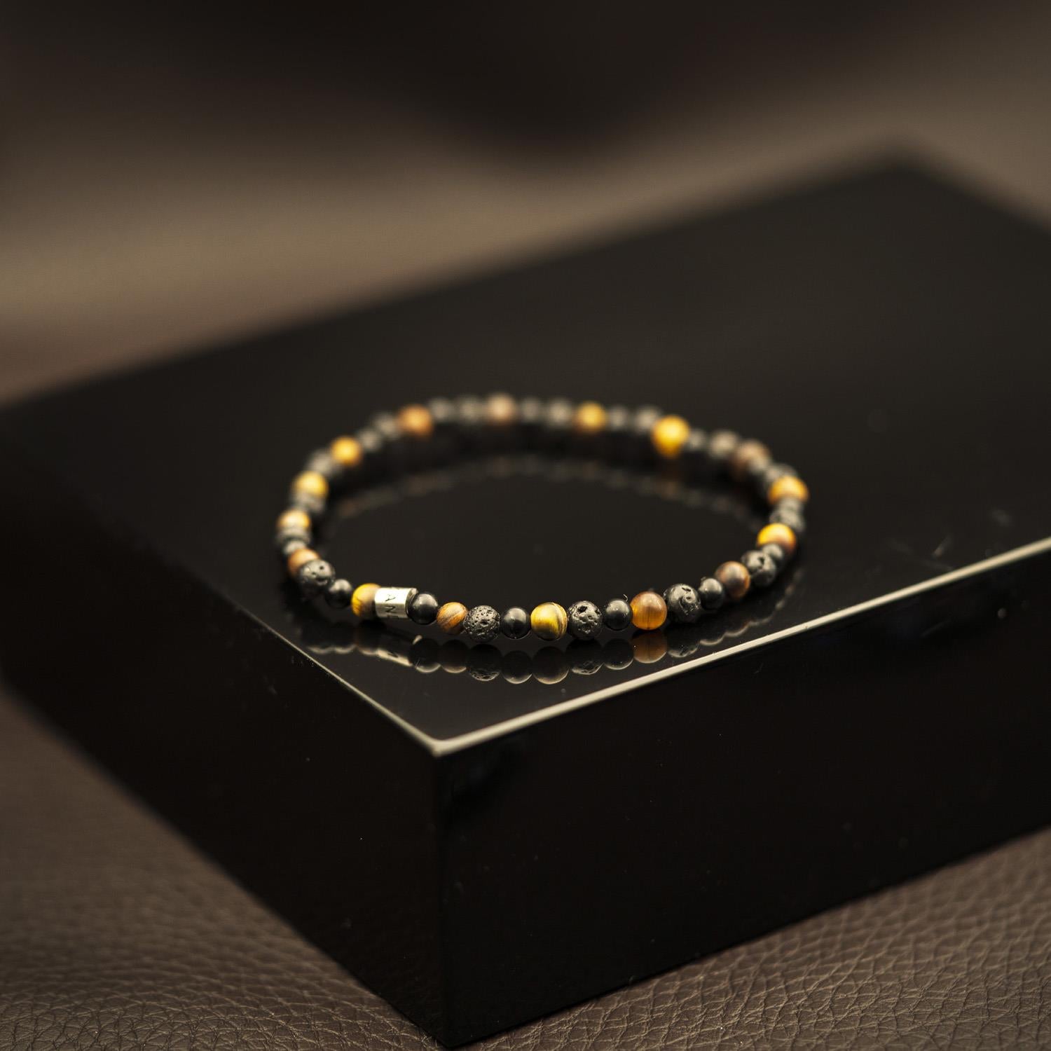 Armbånd i stål med stenperler sort/brun, 16cm