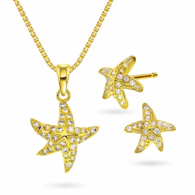 Smykkesett i forgylt sølv med zirkonia, Sjøstjerne