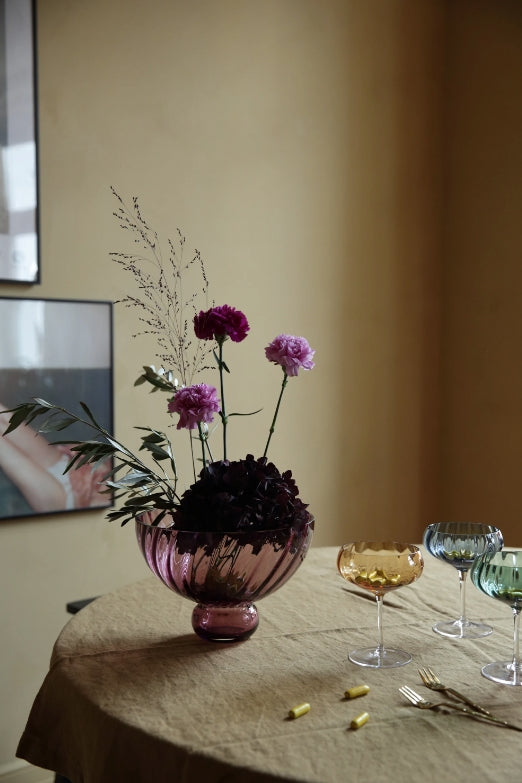 Meadow-samlingen er ideell for en vakker duking. Samlingen er munnblåst og produsert i Europa. På grunn av den håndlagde prosessen er hvert glass unikt. Dette betyr at det kan være variasjoner i vekt og mønster fra glass til glass.