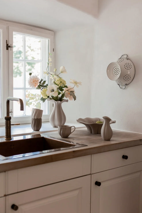 En skulpturell og organisk vase - Nellie vasen, med sine unike og naturlige kjennetegn, er en skulpturell tilvekst til hjemmet og bordet.