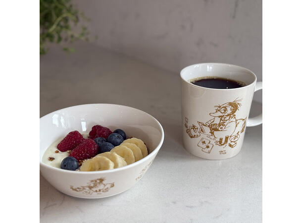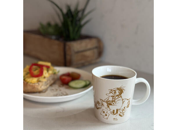 Flåklypa porslenkopp som rommer 330ml med motiv av Solan som spiller poker. Den er laget til alle Flåklypa-fans som ønsker å ta med seg Flåklypa historien inn i hverdagen, enten det er til frokostbordet eller kaffepause.