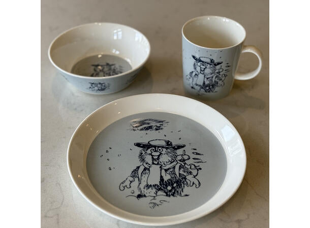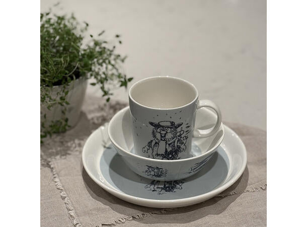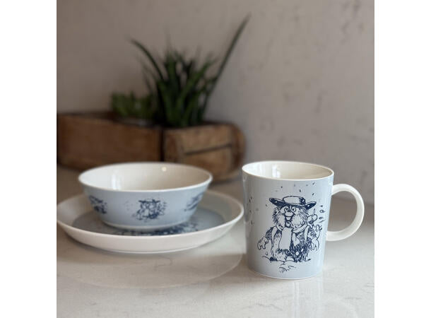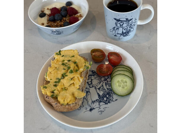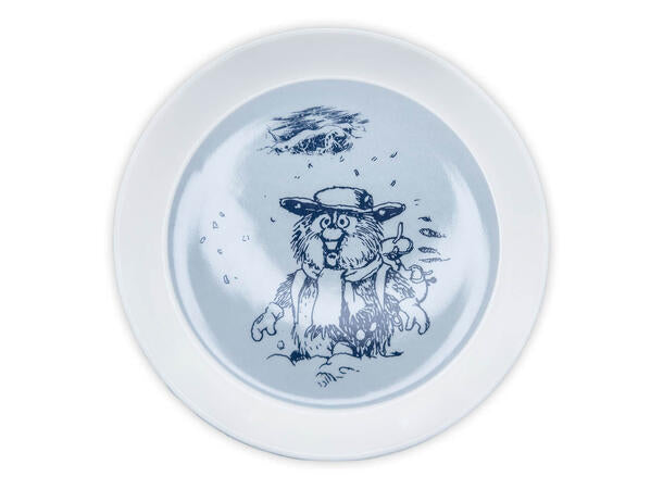 Flåklypa asjett i porselen med motiv av Ludvig i snøføyka. Den er laget til alle Flåklypa-fans som ønsker å ta med seg Flåklypa historien inn i hverdagen, enten det er til frokostbordet eller kveldsmaten.