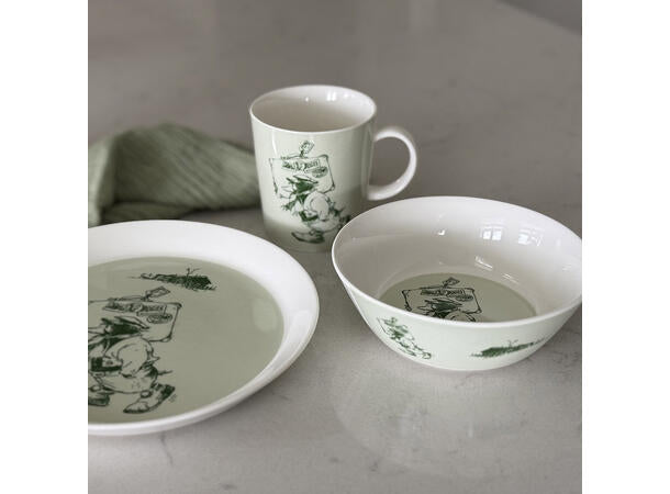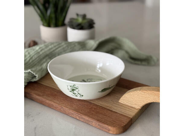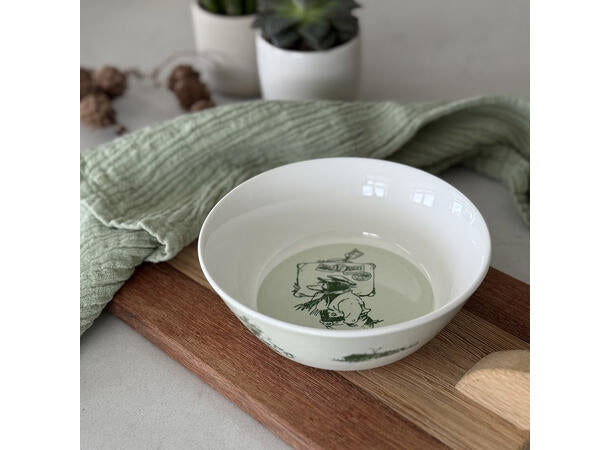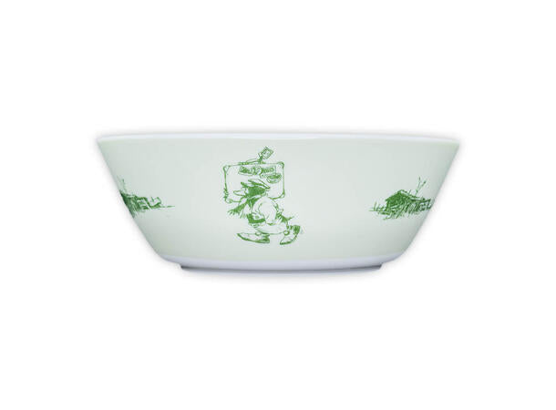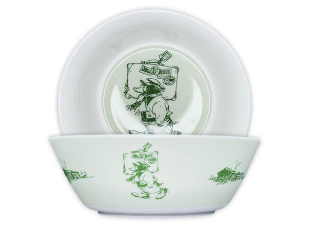 Flåklypa skål i porselen med motiv av Solan i Italia. Den er laget til alle Flåklypa-fans som ønsker å ta med seg Flåklypa historien inn i hverdagen, enten det er til frokostbordet eller kveldsmaten.