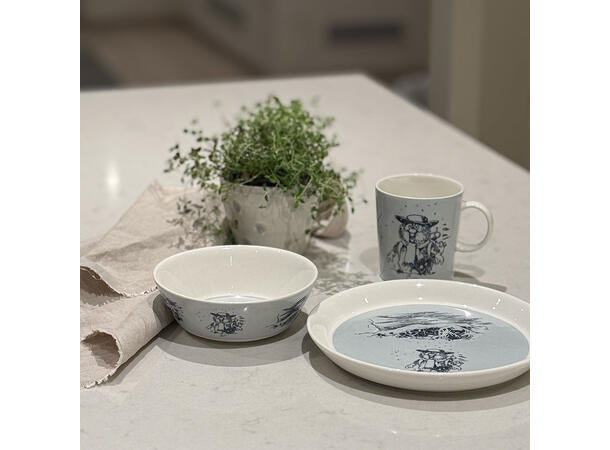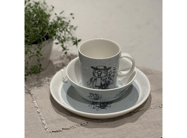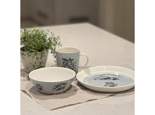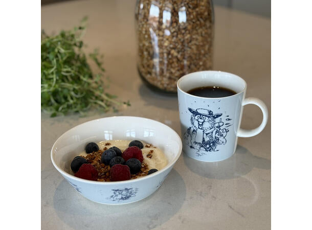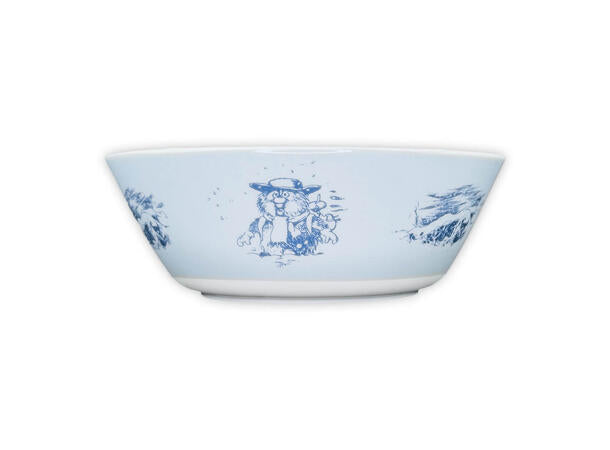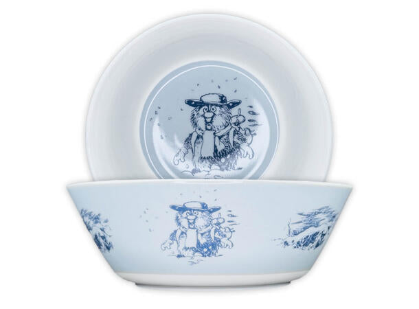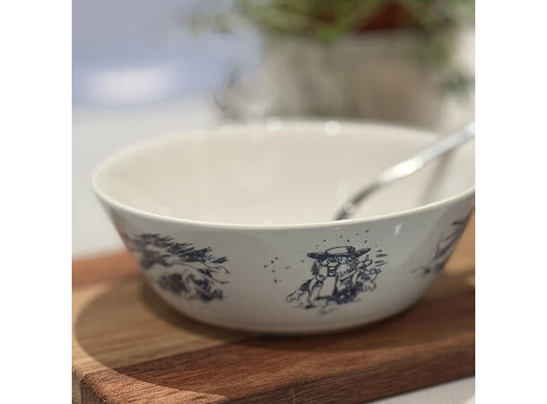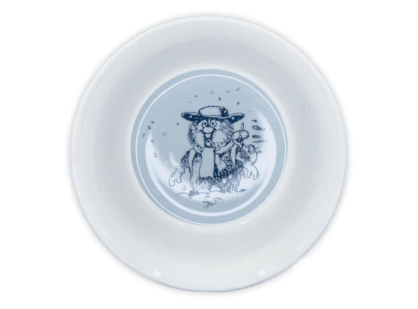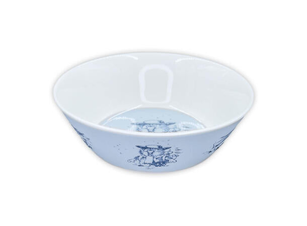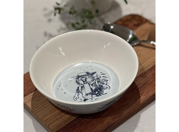Flåklypa skål i porselen med motiv av Ludvig i snøføyka. Den er laget til alle Flåklypa-fans som ønsker å ta med seg Flåklypa historien inn i hverdagen, enten det er til frokostbordet eller kveldsmaten.