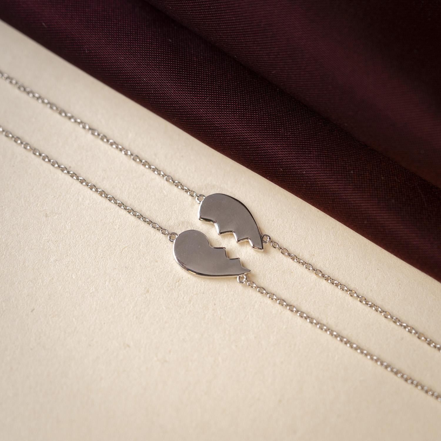 Vennskapsarmbånd - to halvdeler, ett hjerte. To vakre armbånd i 925 sølv med et delt hjerte - én halvdel til deg, én til din beste venn. Et symbol på ekte vennskap, uansett avstand. Kommer også i forgylt sølv.