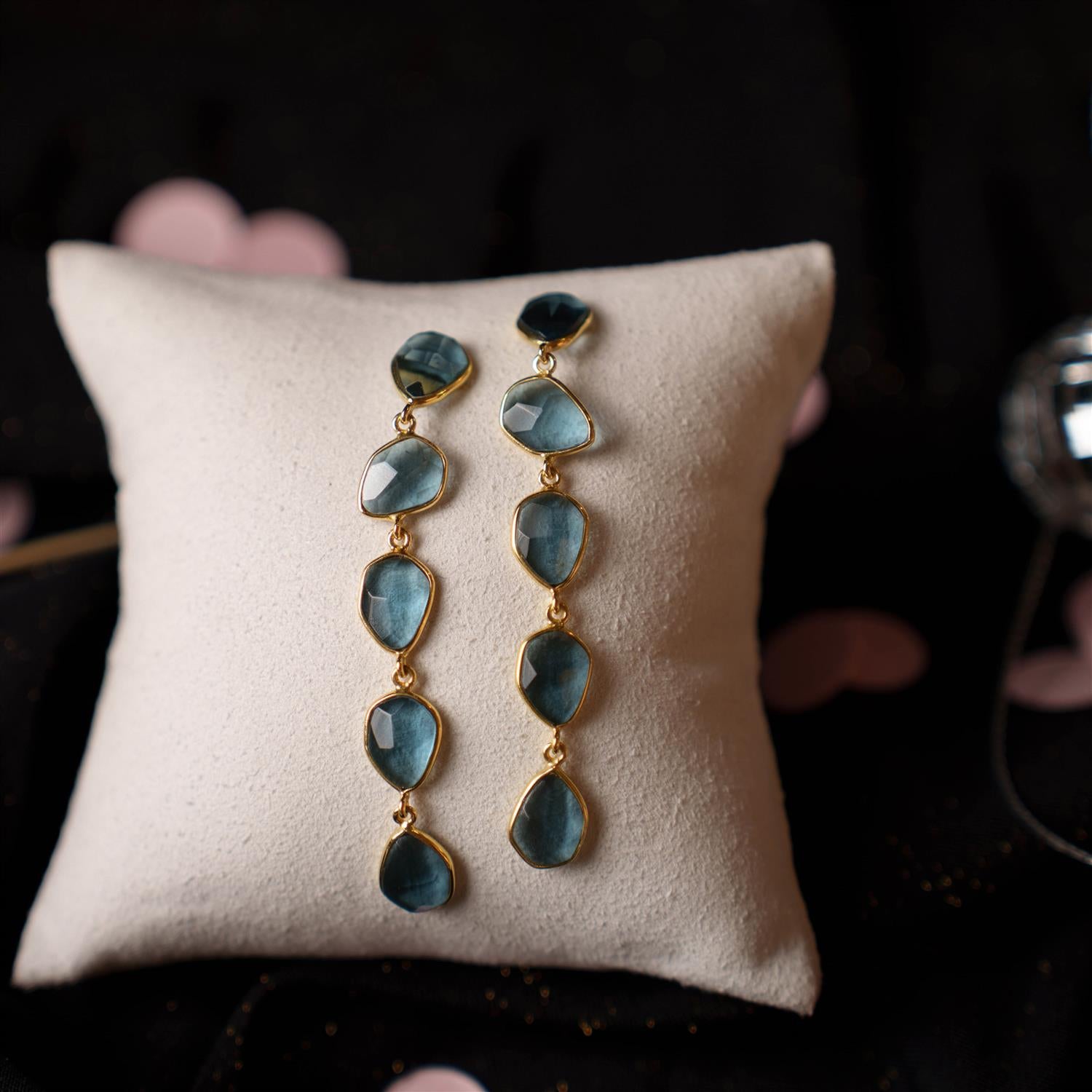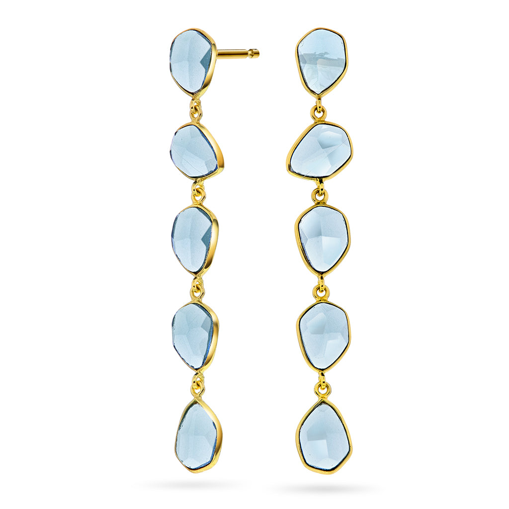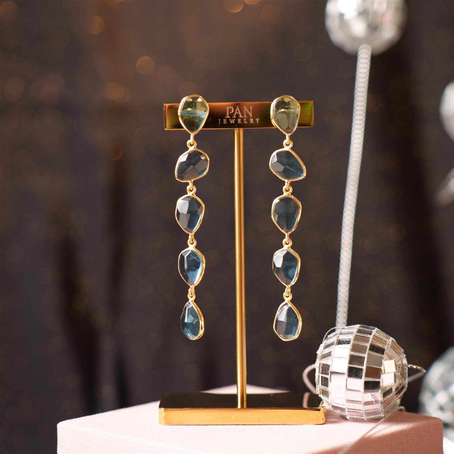 Store øredobber med stener av syntetisk iolitt - glitrer med dybde og farge, og gir akkurat passe mye wow-effekt. Et smykke som løfter både hverdagslooken og festantrekket. Kommer også i rosa toner.