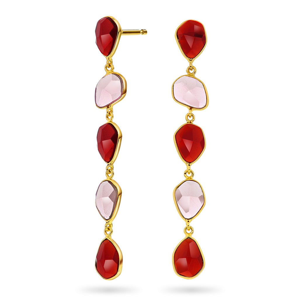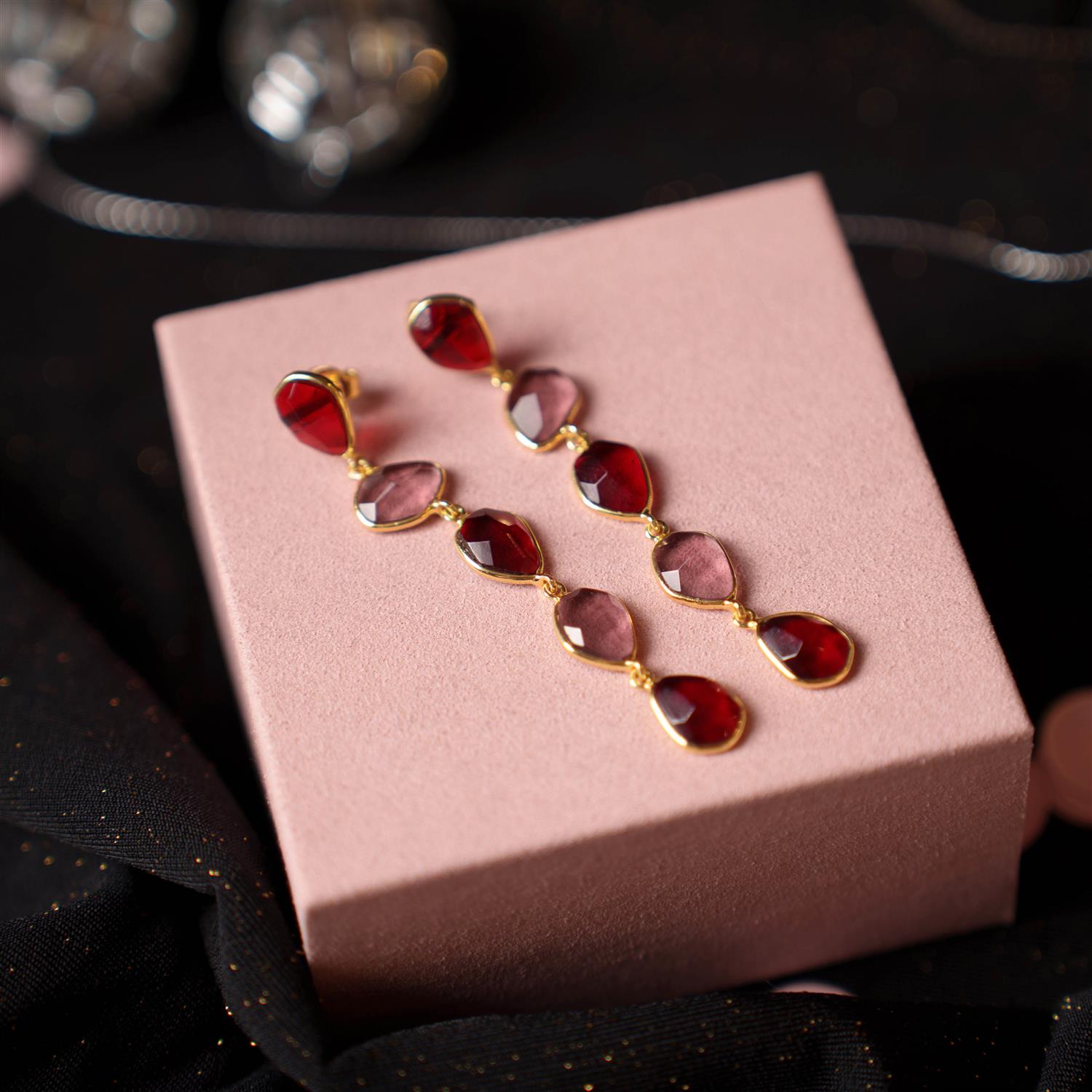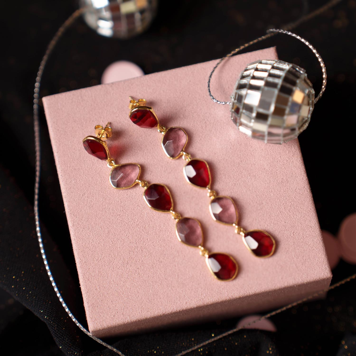 Store øredobber med stener av syntetisk rhodolitt og granitt - en rå og glitrende kombinasjon med masse glød. Perfekt for deg som vil skille deg ut med stil, enten det er hverdag eller fest. Kommer også med blå stener.