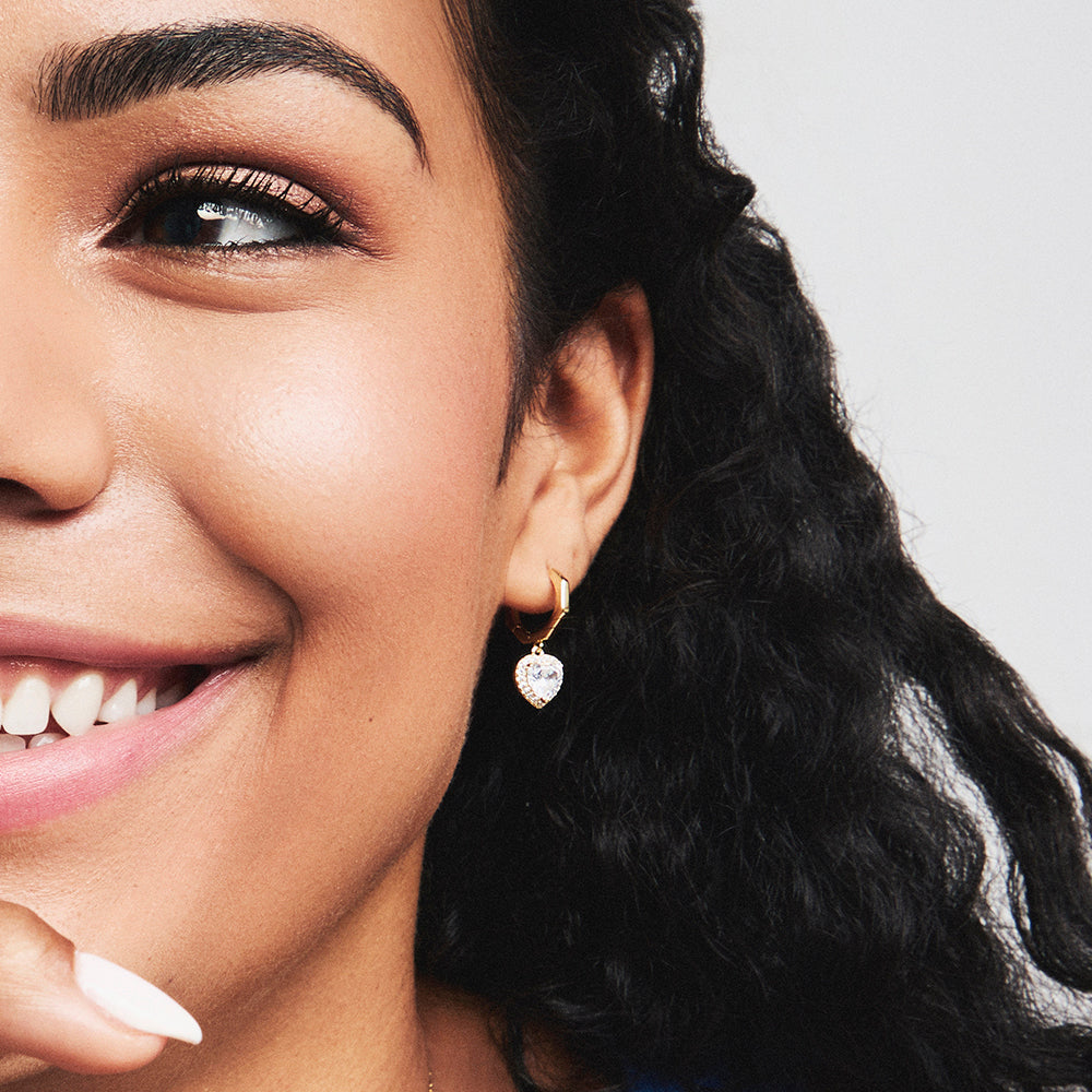 Nea øreringer i 925 forgylt sølv med hvit zirkonia.