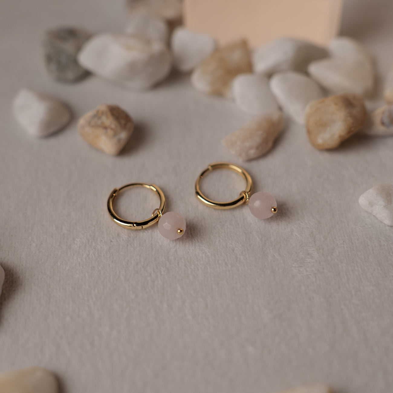 Harmony øreringer i 925 forgylt sølv med rosenkvarts.