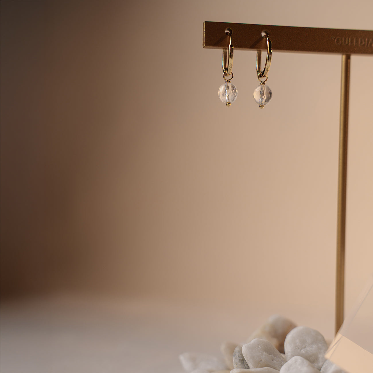 Harmony øreringer i 925 forgylt sølv med bergkrystall.
