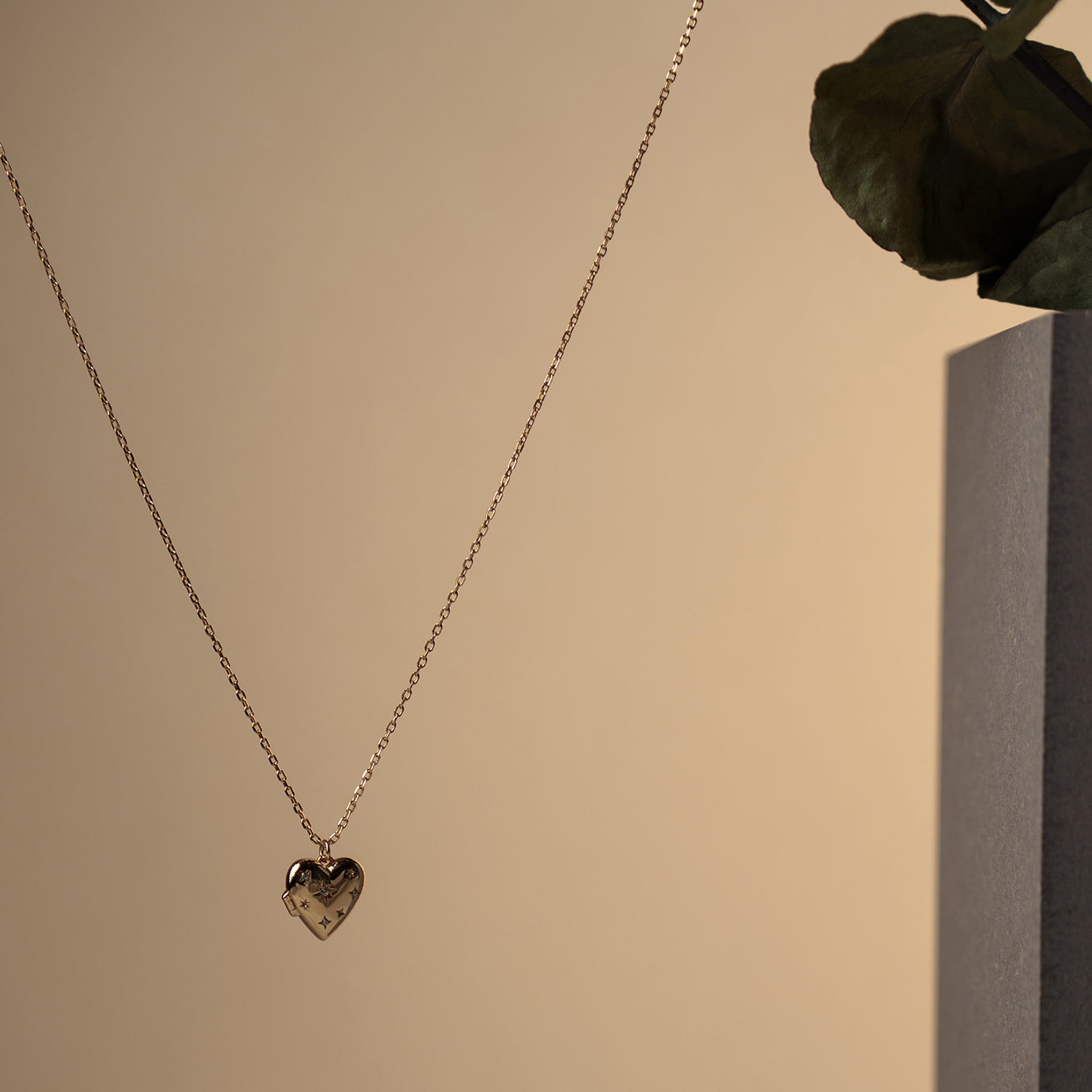 Memories er en vakker hjertemedaljong med blanke zirkonia og en liten rosenkvarts på enden av forlengeren. En medaljong lar deg bære med deg et minne om noen du er glad i, og rosenkvartsen er kjærlighetens krystall.