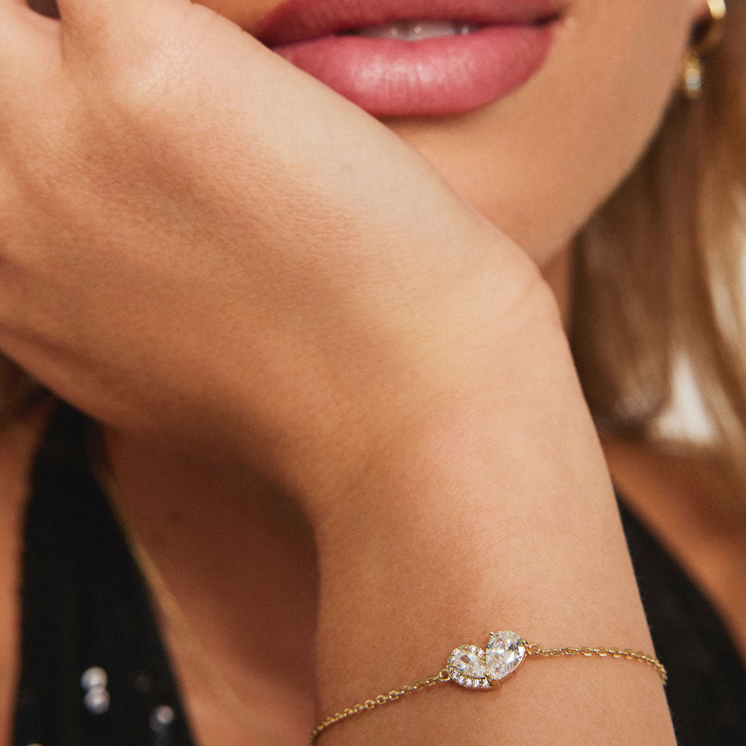 Sammen armbånd i 925 forgylt sølv med zirkonia.