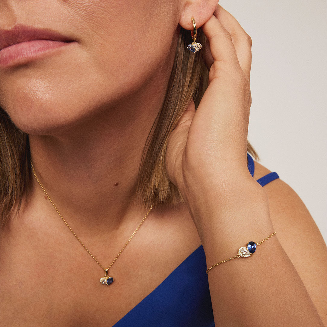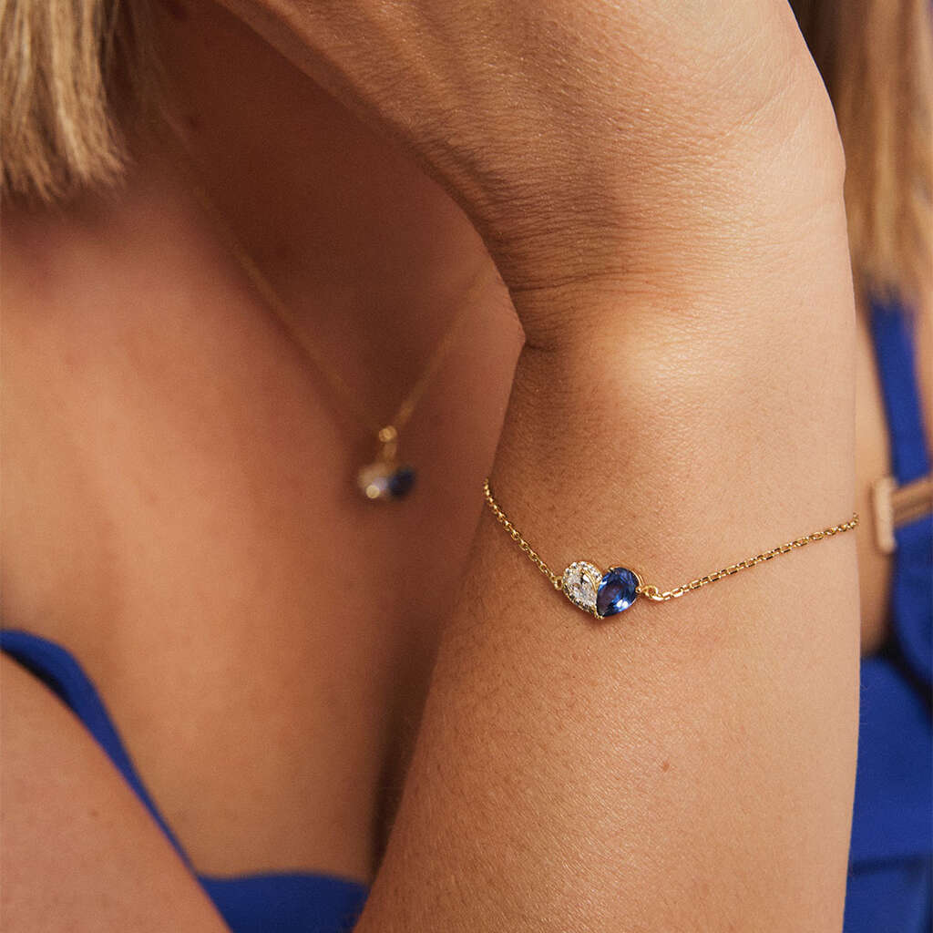 Sammen armbånd i 925 forgylt sølv med blå og hvit zirkonia.
