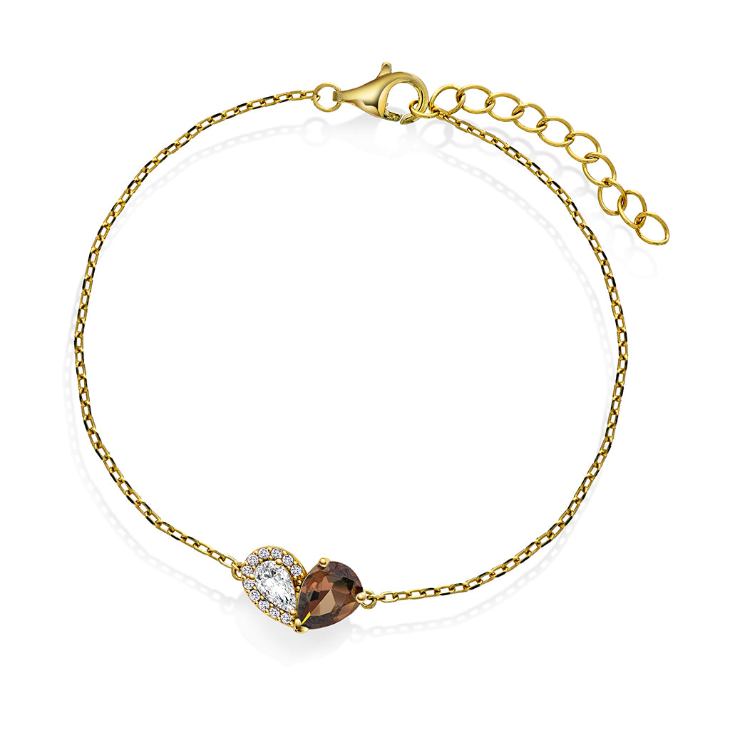 Sammen armbånd i 925 forgylt sølv med brun og hvit zirkonia.
