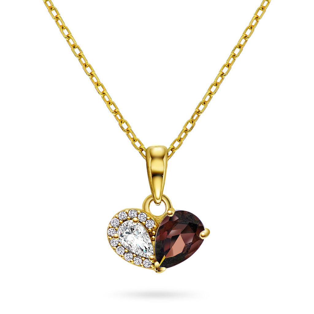 Sammen smykke i 925 forgylt sølv med brun og hvit zirkonia.