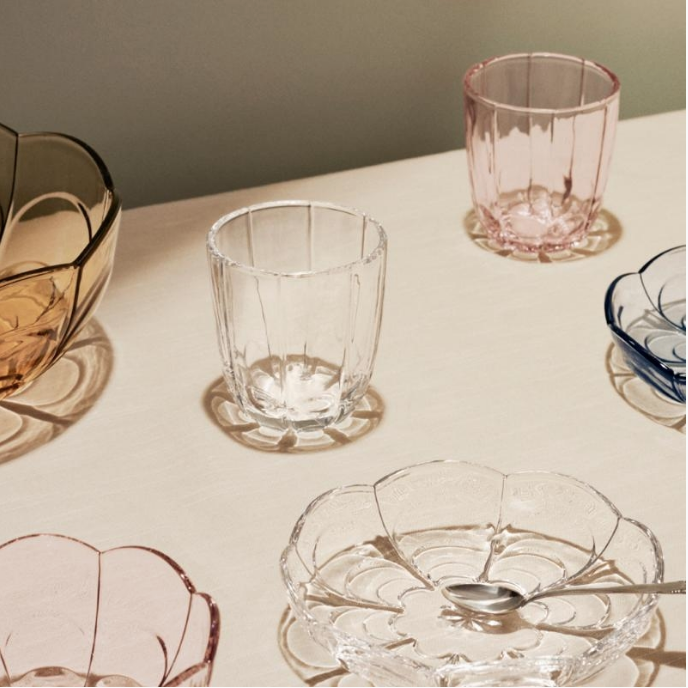 Desserttallerkenene er enkle å stable og kan vaskes i oppvaskmaskin, så du kan bruke dem daglig uten å måtte bekymre deg for å vaske dem for hånd. Serien inneholder også en stor serveringsskål, en mindre skål og vannglass - alle i fire forskjellige farger. Alle delene i Lily-serien er laget av farget glass, slik at fargen holder seg vakker over tid.