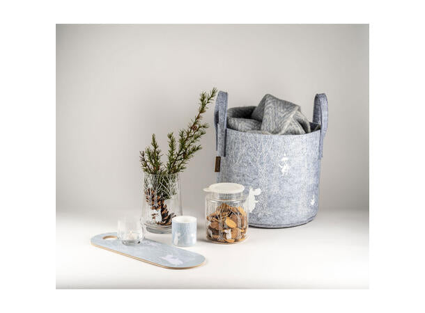 Flott multifunksjonell oppbevaringskurv som kan vaskes for hånd. Materialet er ikke vanntett, så du bør være oppmerksom på valg av underlag om du bruker den som blomsterskjuler. Den er super til alt fra aviser, leker, ved og til strikketøyet ditt.