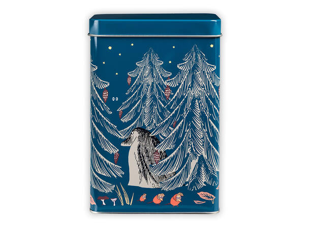 Kaffeboks i tinn med Mummi-motiv og lufttett hengslet lokk. Passer perfekt til en 500 gr pose kaffe. Håndvask og grundig tørking anbefales.