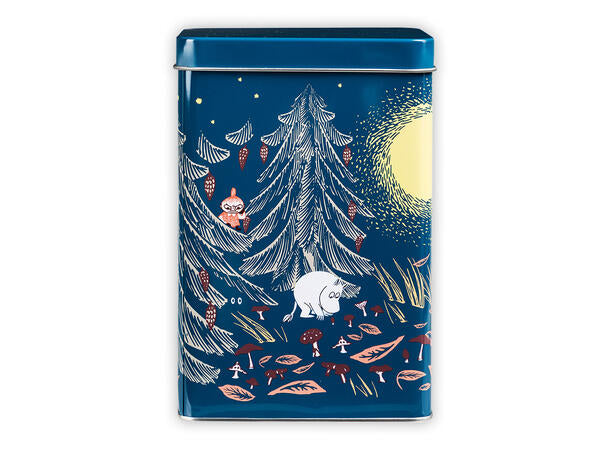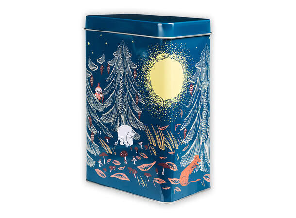 Urskog - En tidløs oppbevaringsboks i to ulike størrelser med motiv fra Mummiverden. Fint Mummi-motiv der Mummitrollet og hans venner tilbringer en høstdag i skogen, der både kropp og sjel får hvile.