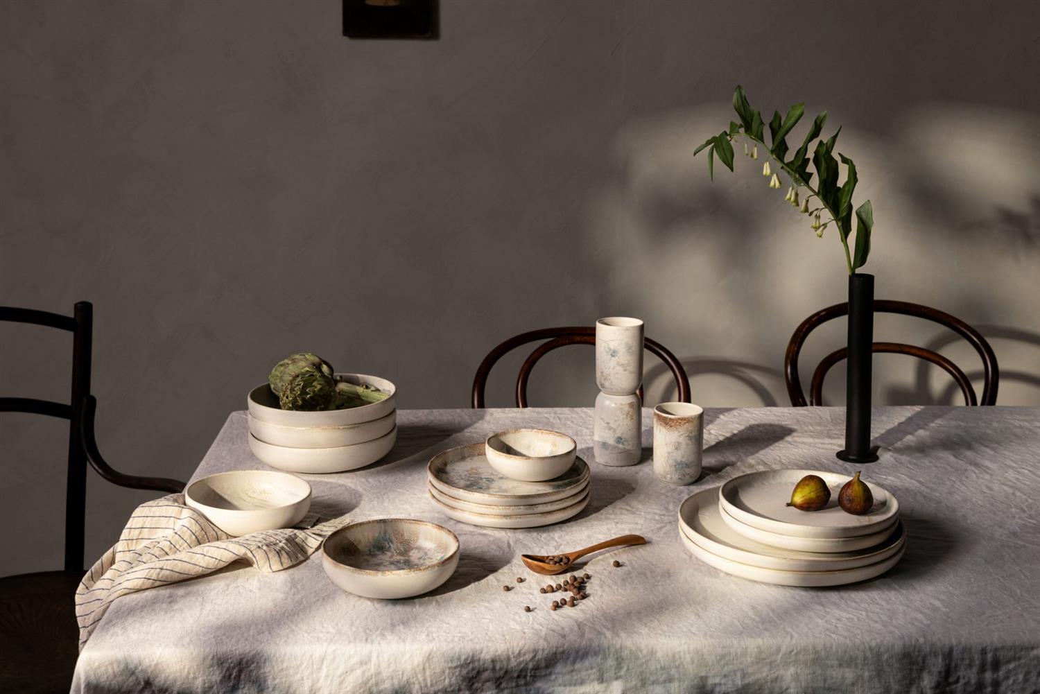Palazzo er en hyllest til tidløs eleganse og rustikk sjarm. Inspirert av de gamle palassene i Italia, forener kolleksjonen rå teksturer med en myk, håndlaget følelse. Hver del er laget av steingods med en reaktiv glasur som gir en naturlig dybde og unike variasjoner – ingen deler er helt like. Palazzo er skapt for å tilføre varme og karakter til bordet, uansett om man dekker til hverdags eller fest. En perfekt balanse mellom det enkle og det eksklusive, det klassiske og det moderne.