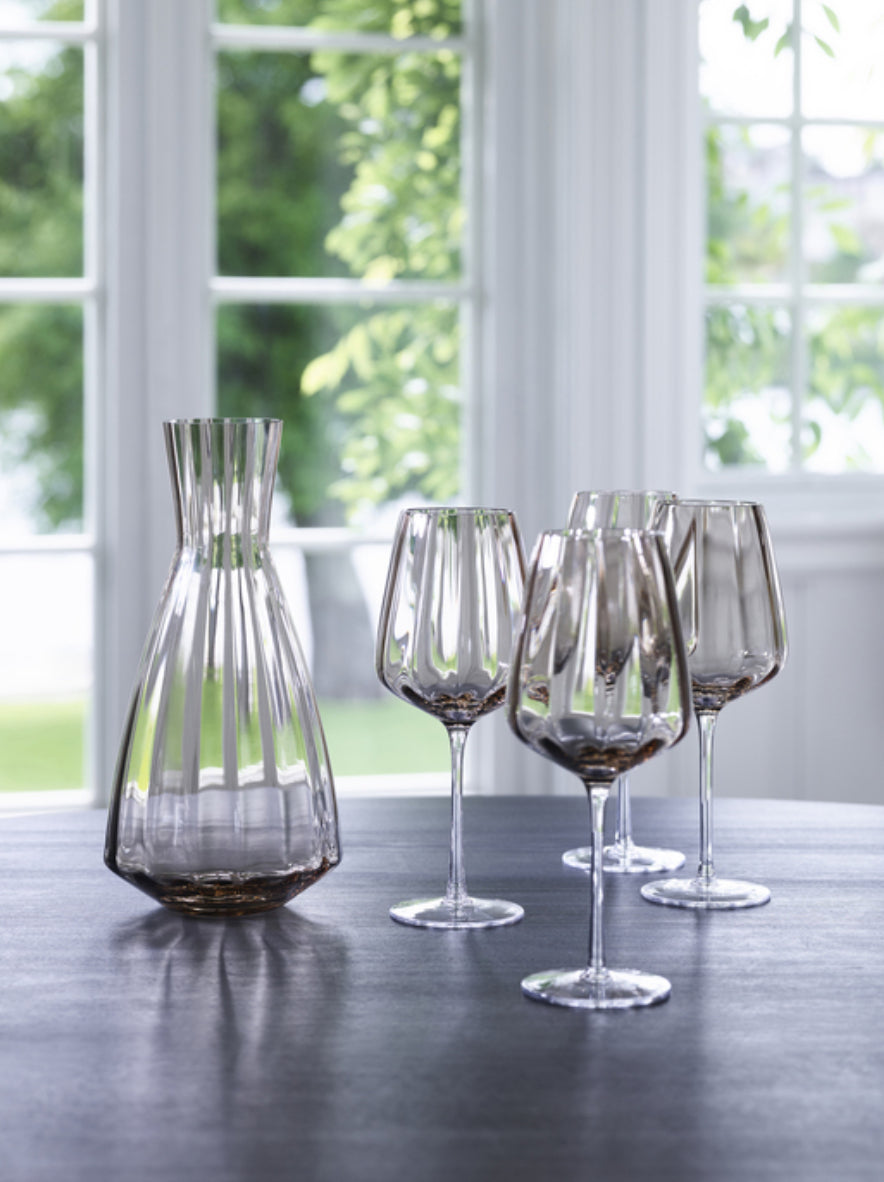 XO er et nytt og elegant vinservise med vakkert lysspill, formgitt av interiørdesigneren og tv-profilen Halvor Bakke. Vinserien er stilren og gir en eksklusiv følelse. Lys topas tonet glassklokke med virvelformet optikk i kombinasjon med funklende isklar stett gir et fantastisk lysspill. Det optiske glasset gir assosiasjon til gamle herskapelige glass og passer perfekt til porselensservisene Halvor Bakke har designet for Magnor som Linen, Noir og Nostalgi.