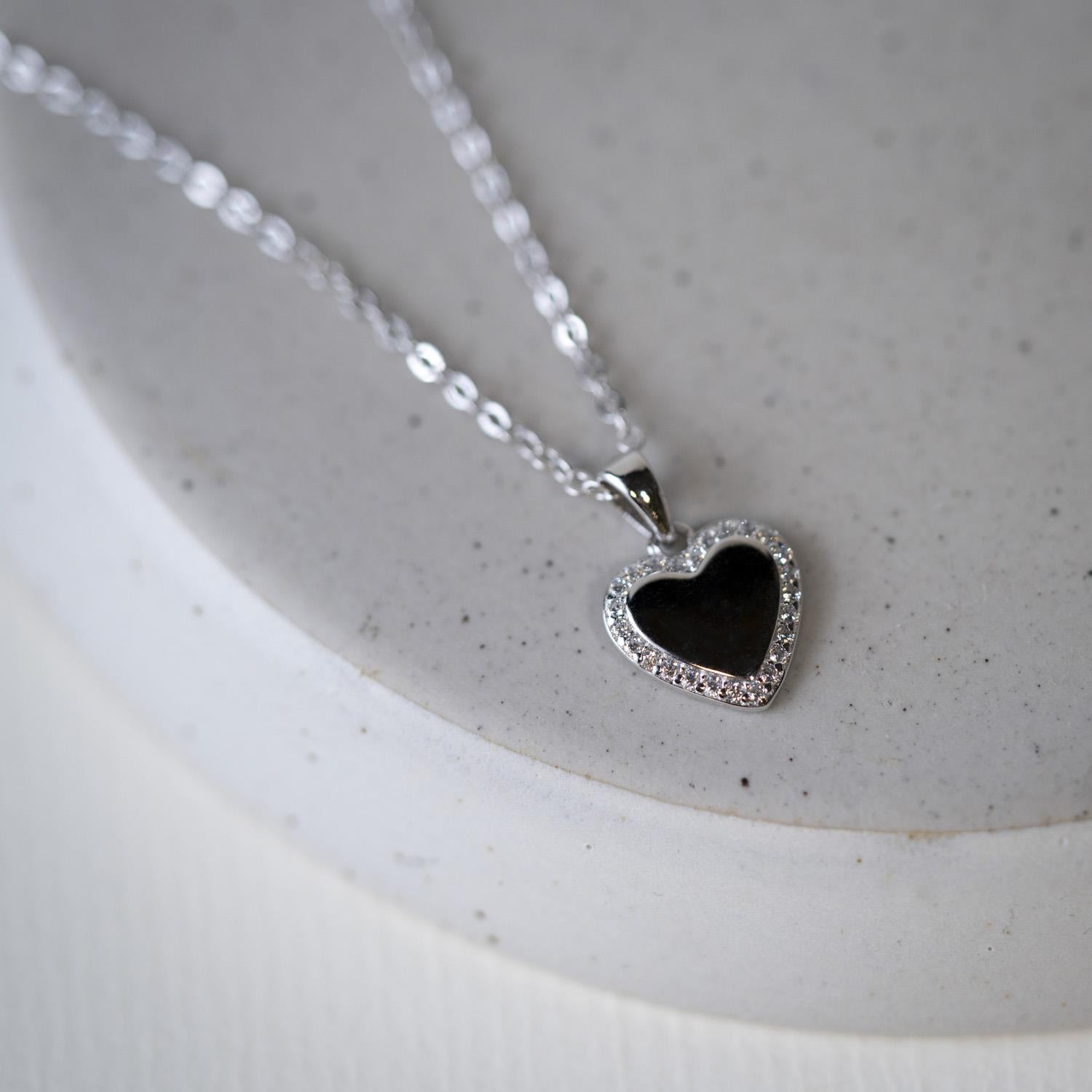 Smykke i sølv med zirkonia hjerte, 15 mm