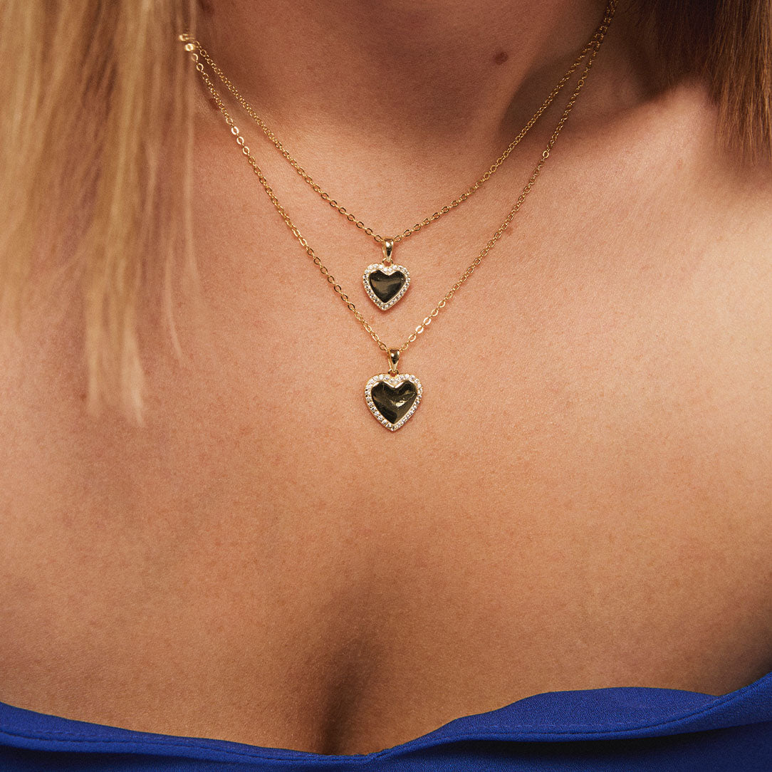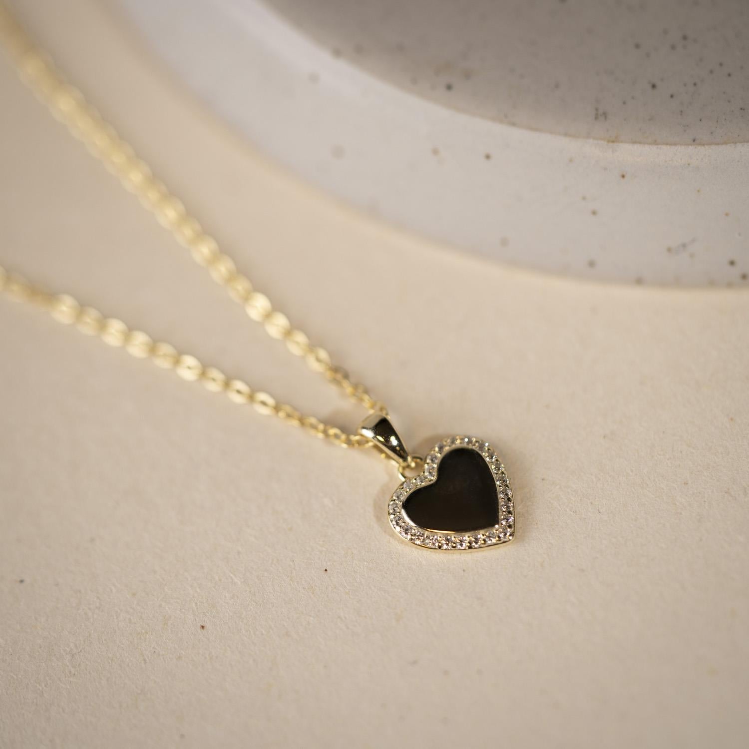 Smykke i 925 forgylt sølv med zirkonia hjerte.