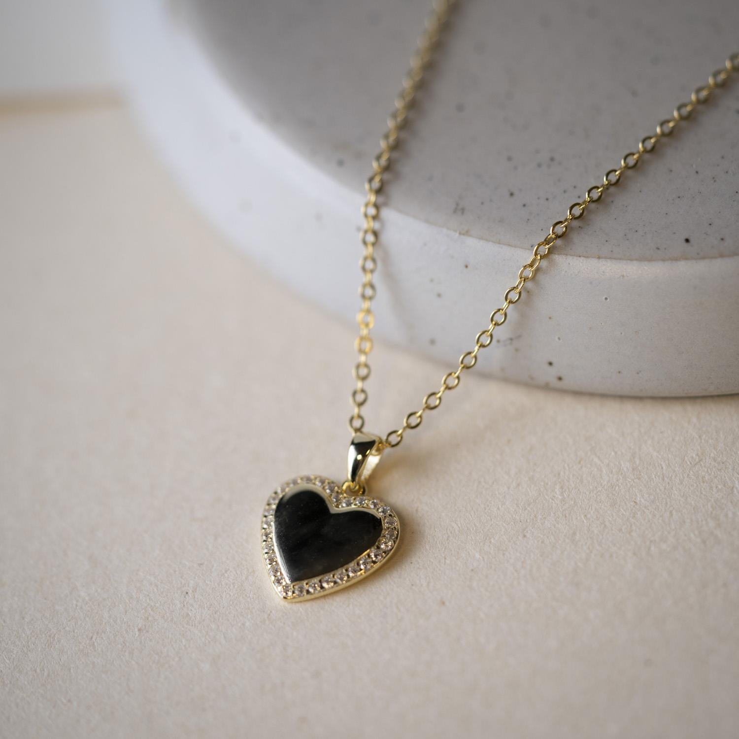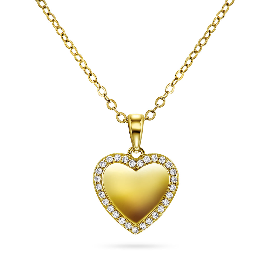 Smykke i 925 forgylt sølv med zirkonia hjerte.