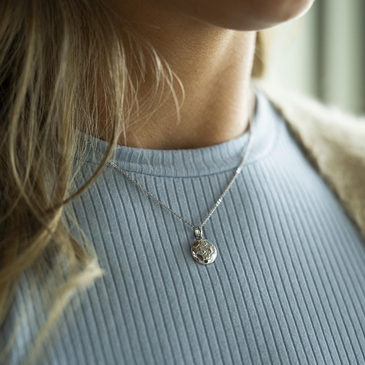 En av bestselgerne fra Nora Mørks kolleksjon med Gulldia. Dette smykket i rhodinert sølv gjenspeiler Nora som menneske og håndballspiller.