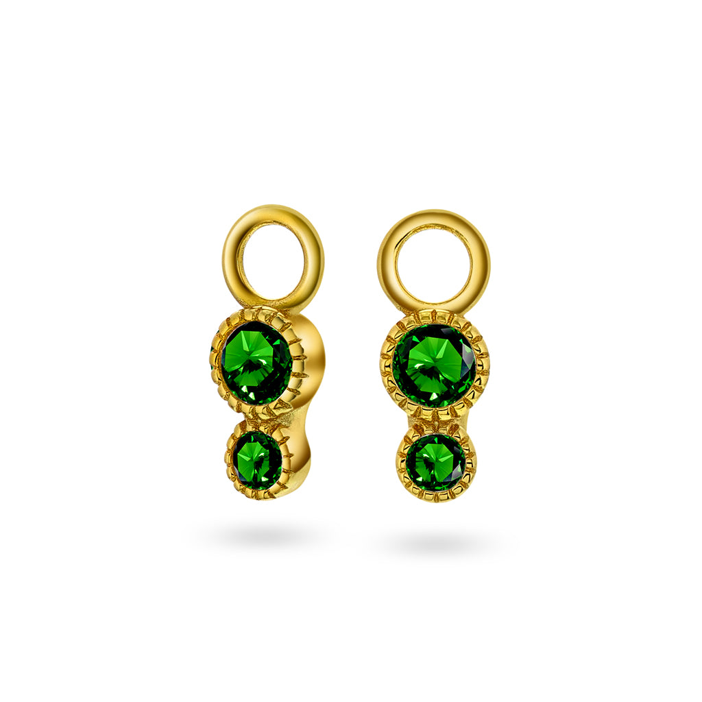 Duo charms i forgylt sølv med grønne zirkonia fra Nora Mørks kolleksjon med Gulldia. Fantastiske charms til å pynte opp dine øreringer.