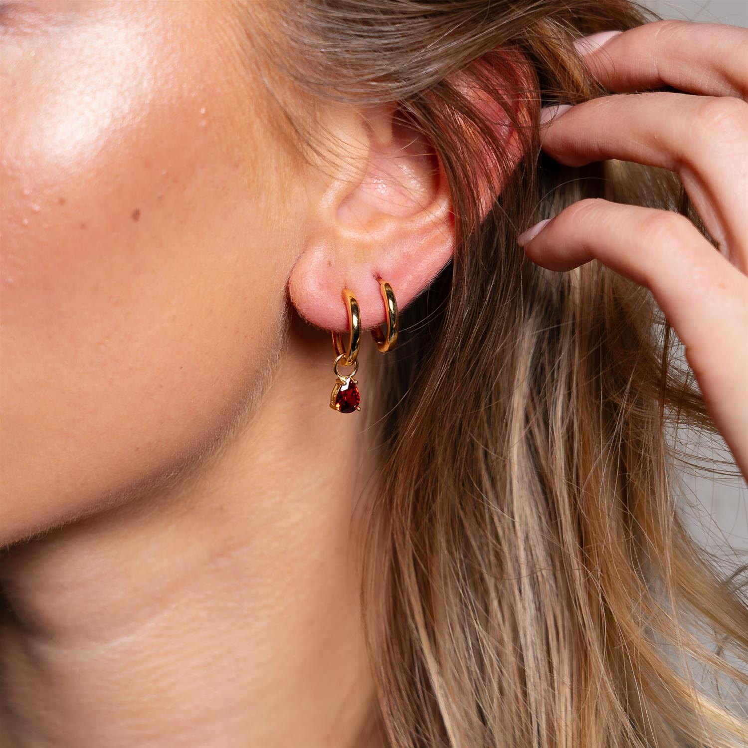 Drop charms i forgylt sølv med dyprød zirkonia fra Nora Mørks kolleksjon med Gulldia. Fantastiske charms til å pynte opp dine øreringer.