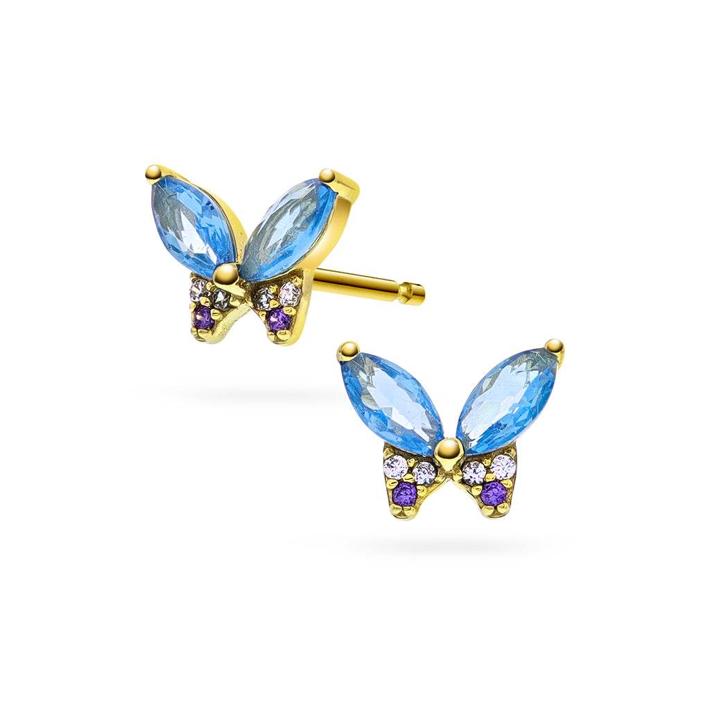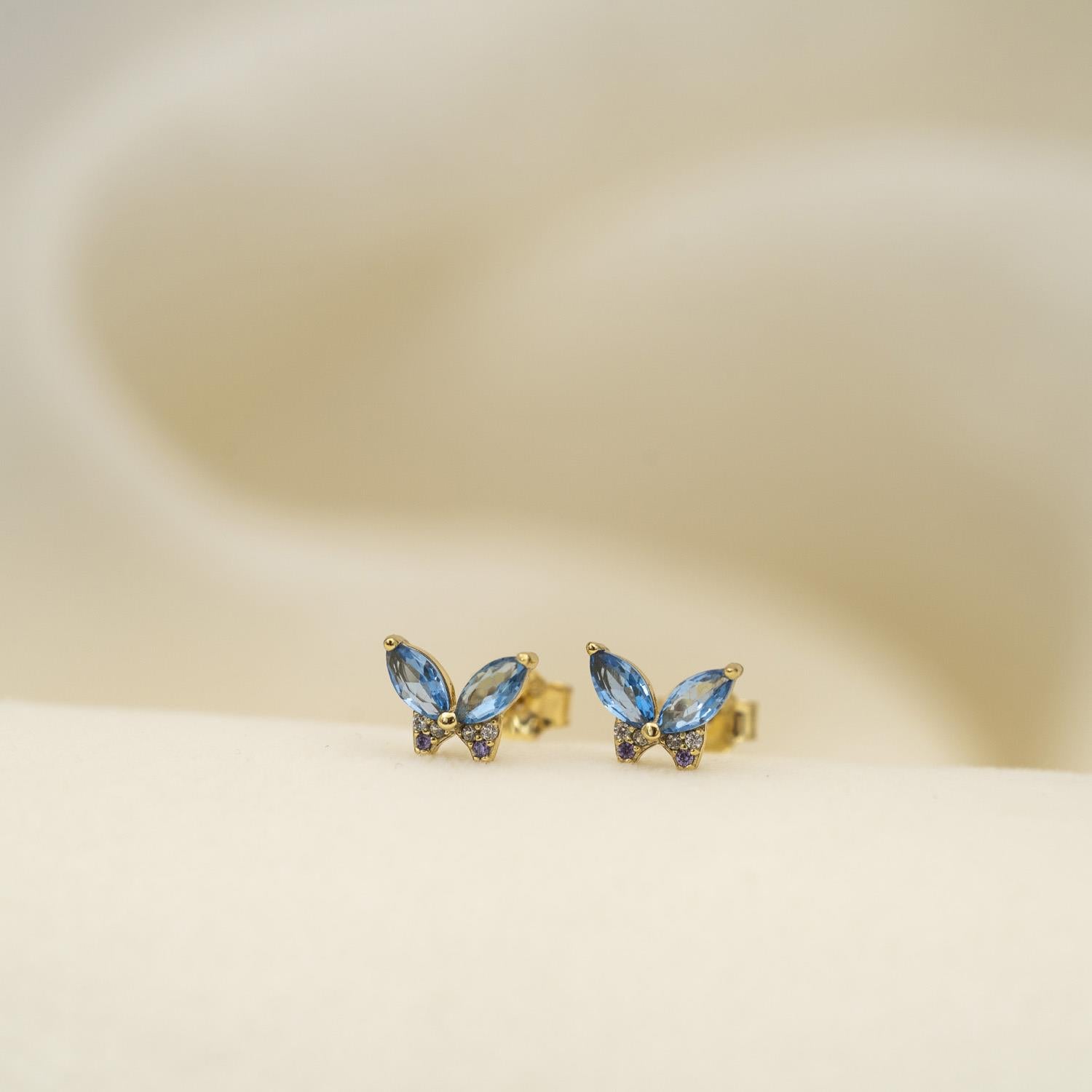 Øredobber i forgylt sølv med blå sommerfugl i zirkoniastener.