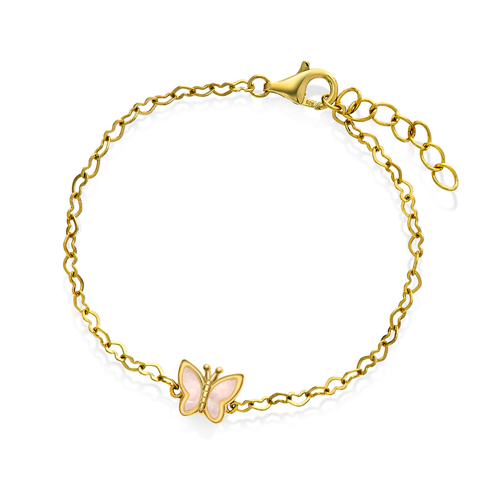 Prins & Prinsesse Armbånd i forgylt sølv med rosa perlemor, sommerfugl