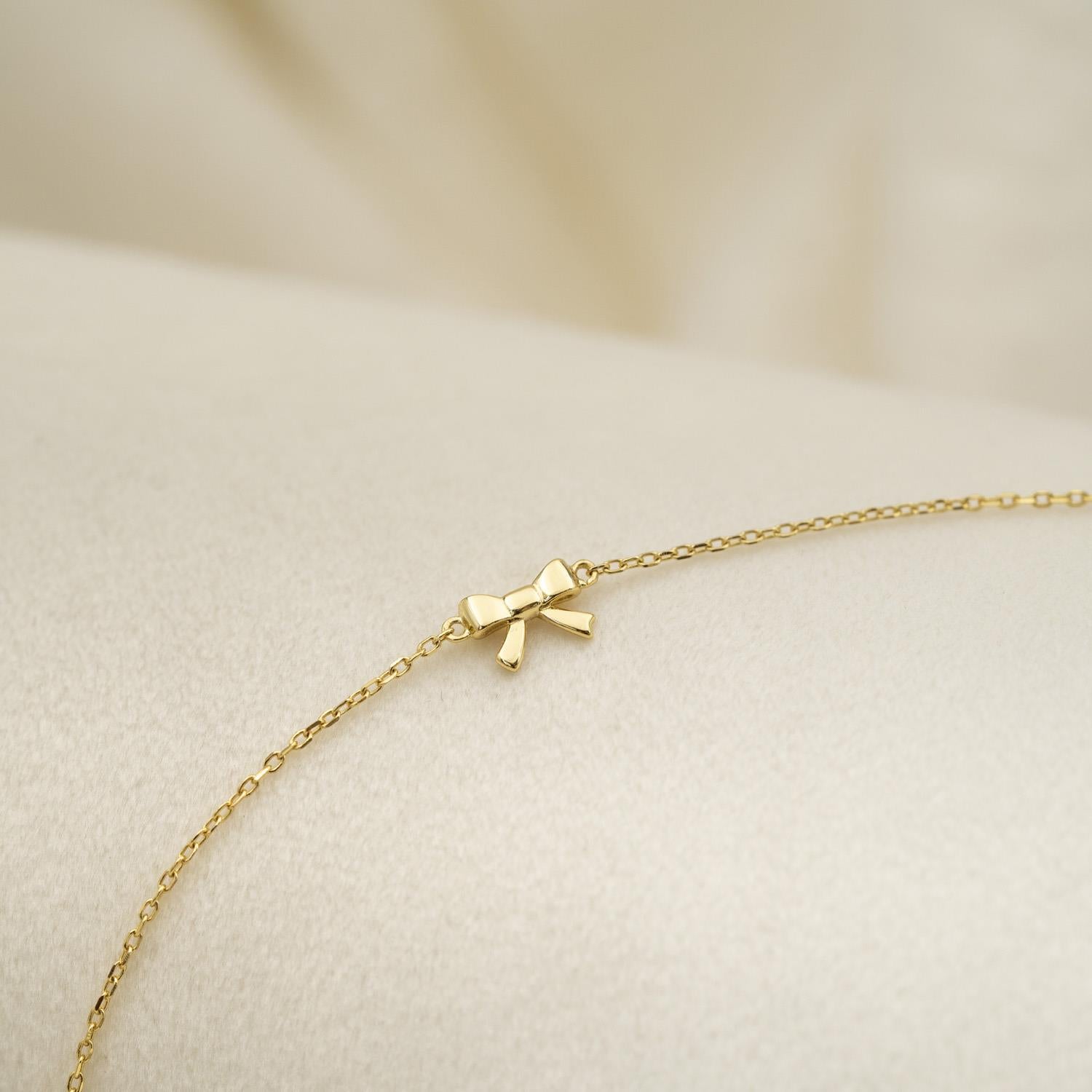 Armbånd i forgylt sølv med en yndig sløyfe. Tilhørende smykke finnes også.