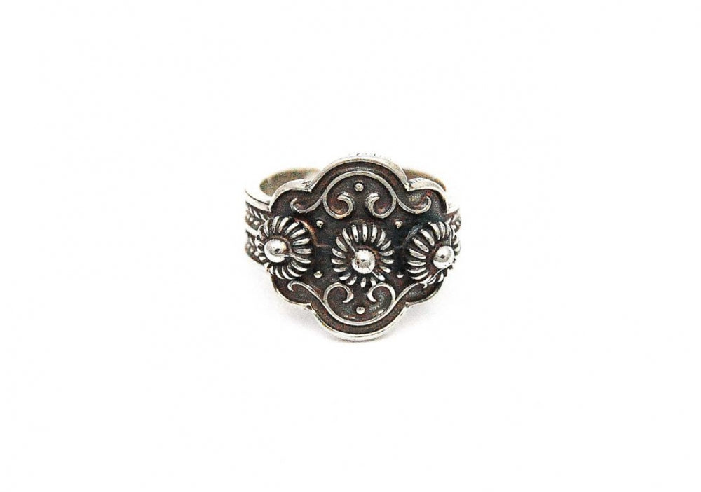 Bunadsring i oksidert sølv med tradisjonsrik filigrandekor. Passer til bunader med oksidert bunadsølv, og kan reguleres slik at den passer alle størrelser.