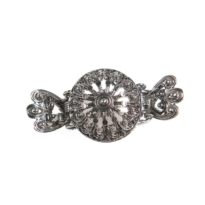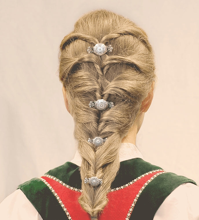 Liten hårklype til bunad i oksidert sølv. Bredde: 36mm. Disse variantene i sølv er designet av NOMA og produsert av Sylvsmidja på Voss.