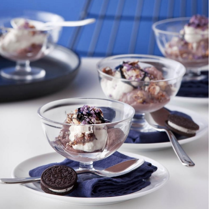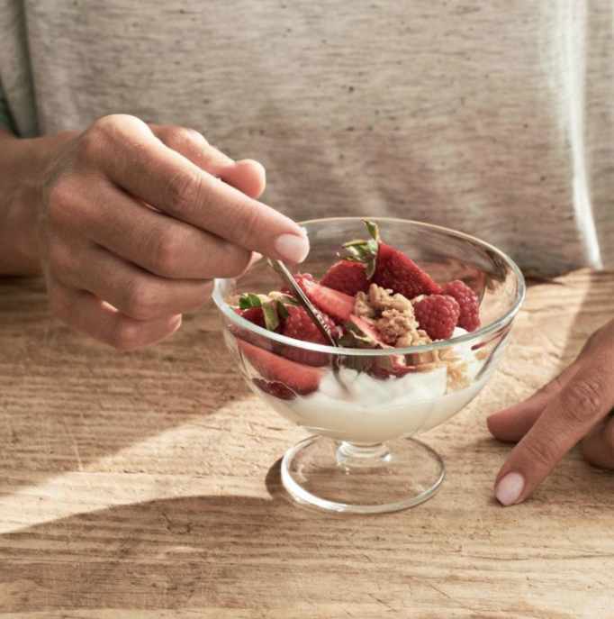 Det ’opphøyde’ glasset gir borddekkingen en lett look og setter nytt perspektiv på alt fra morgenyoghurt med friske bær til fruktsalat, ferske reker og andre forretter. Akkurat som de øvrige glassene i Soft-serien, kan de stables slik at det sparer plass i skapet. Skålen på fot kommer i en eske med fire stk. til en gavevennlig pris.