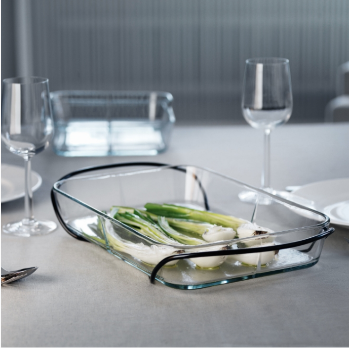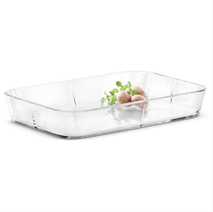Det ovnfaste glassfatet har et enkelt og lett uttrykk og kan gå direkte fra ovn til et dekket bord. Bruk det også til servering av snacks, frisk frukt og små salater.