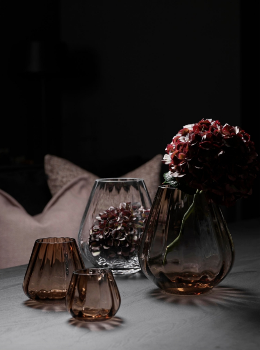 Rocks XO telykt/vase Ø13 H12 cm glass topaz. Bestselgerserien ROCKS er utvidet! ROCKS XO er tre elegante lykter med nydelig optisk lysspill, formgitt av interiørdesigneren og tv-profilen Halvor Bakke.