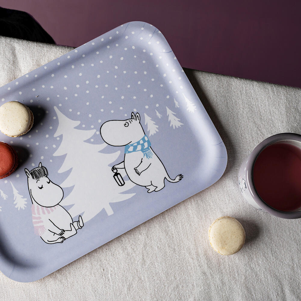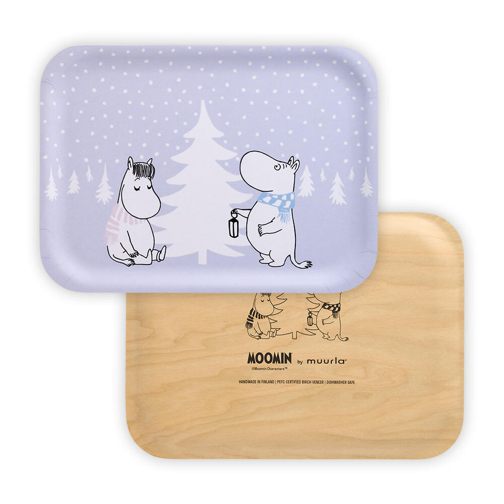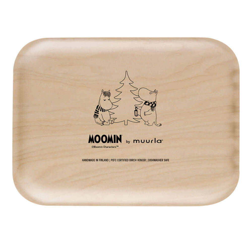 Avlangt Mummi-brett i bjørkefinér av høy kvalitet med vintermotiv fra Mummiverden.