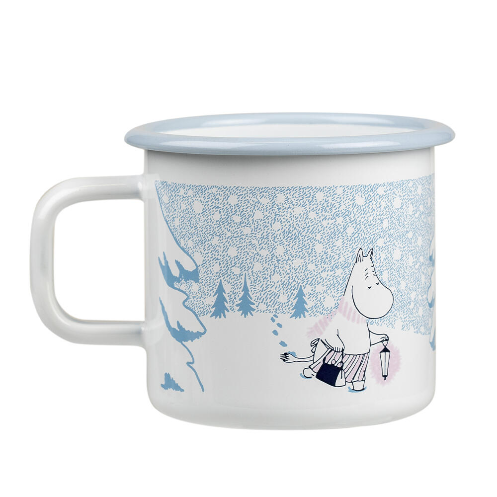 Emaljekoppen har en myk kantovergang for å skape en behagelig overflate å drikke fra. Emaljekoppen er godkjent for bruk på komfyr, induksjonsplate, ovnen og i oppvaskmaskin. Ikke godkjent for bruk i mikrobølgeovn.