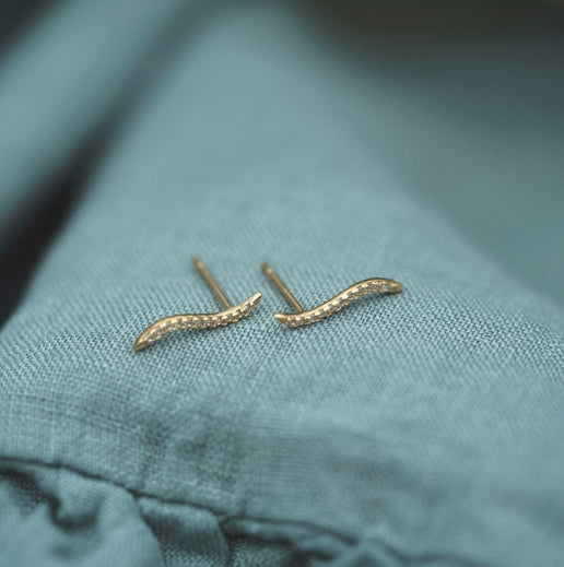 Øredobber i 585 gult gull med zirkonia. H:8 mm B: 1,4 mm.