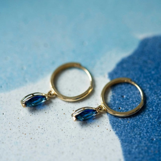 Øreringer i gull med blå zirkonia