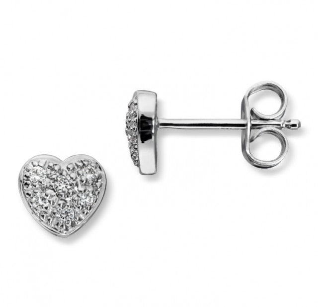 Øredobber i 585 hvitt gull med zirkonia. H: 5mm, B: 6mm.