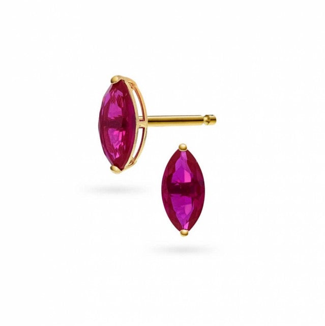 Øredobber i 585 gult gull med rød zirkonia. H: 9mm, B: 4mm.