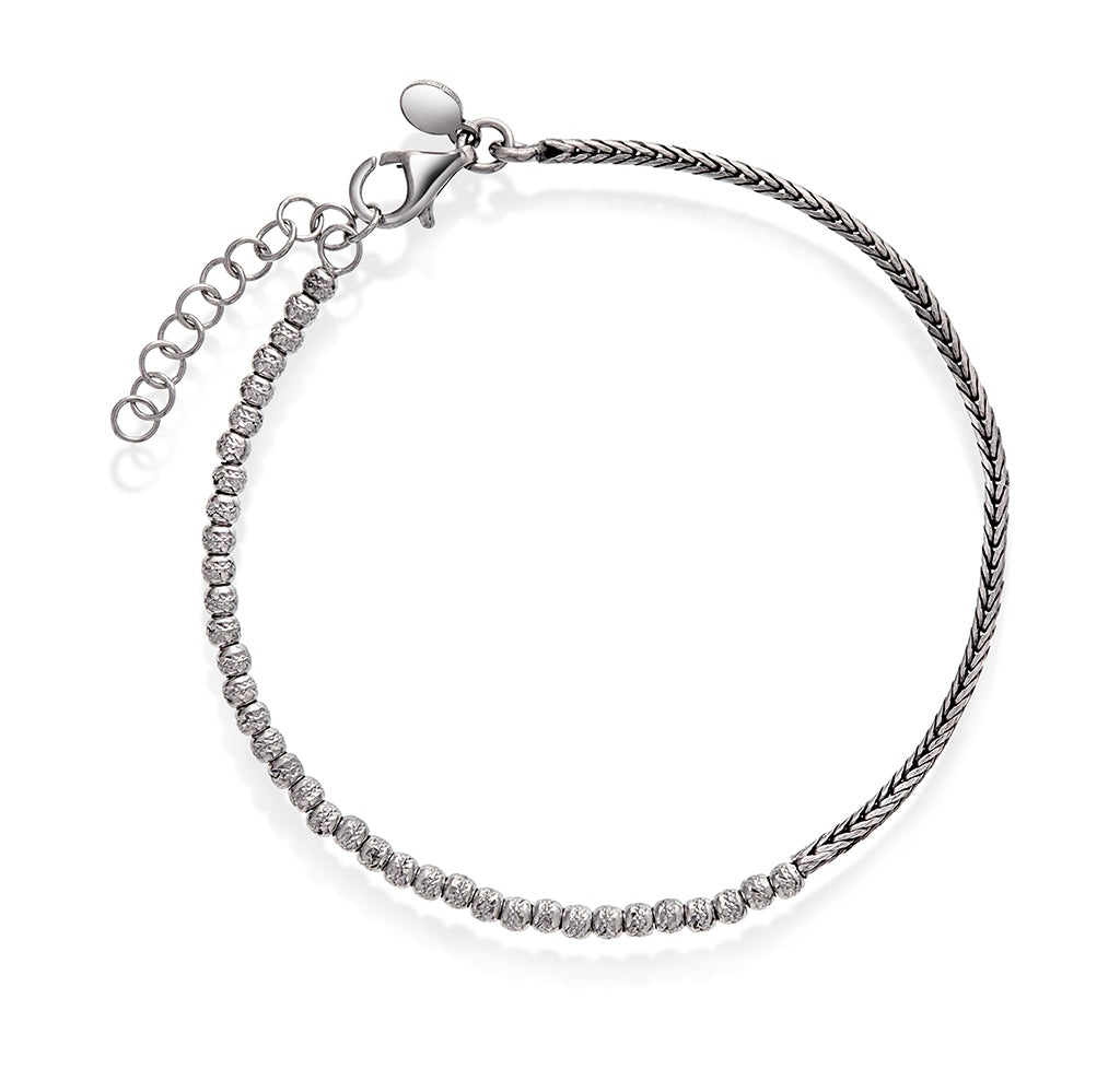 Armbånd i rhodinert sølv med kuler fra Pan Jewelry. L: 16+3 cm, B: 2,4 mm.