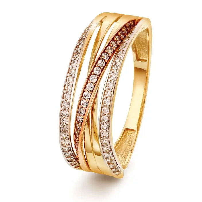 Ring i 14k gult- og rosegull med blanke zirkonia. Kommer i gaveeske.